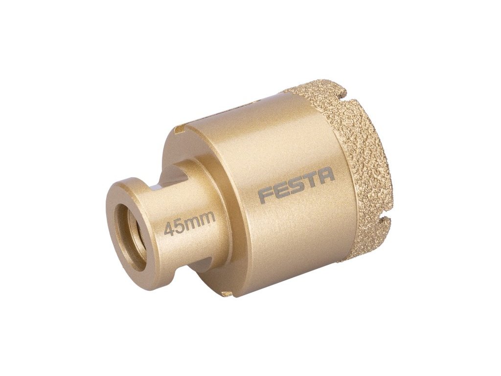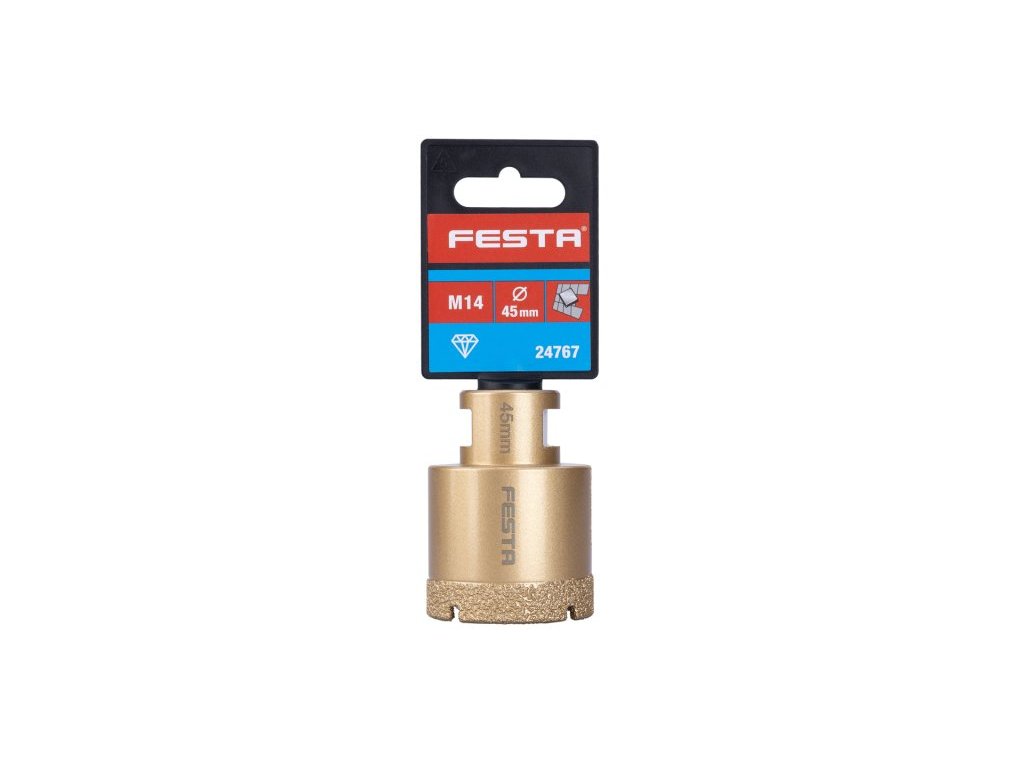 profesionální vykružovací diamantová korunka se závitem M14 - pro úhlové brusky pro "suché" přesné a rychlé vrtání do kamene, dlažby, obkladů, žuly, mramoru a jiných extrémně tvrdých materiálů nejen ve stavebnictví výška vrstvy diamantu 10 mm, dlouhá životnost bez nutnosti použít jakýkoli pomocný nástroj vykroužíte přesný otvor na požadovaném místě doporučený pracovní postup - našroubujte korunku přímo na závit hlavy úhlové brusky, pevně dotáhněte, vykružovat požadovaný otvor začněte pod úhlem 45 °, korunka a rychlost brusky okamžitě zajistí uchycení v požadovaném místě, pomalu při rovnoměrně vytvořeném tlaku narovnejte směr vykružování do svislé polohy, menší průměry 6 - 14 cm je u vrtání do tvrdých dlažeb, mezi jednotlivými vrty, ZCHLADIT - stačí ponořit do sklenice s vodou nebo nechat v otáčkách ochladit vzduchem! Instruktážní video