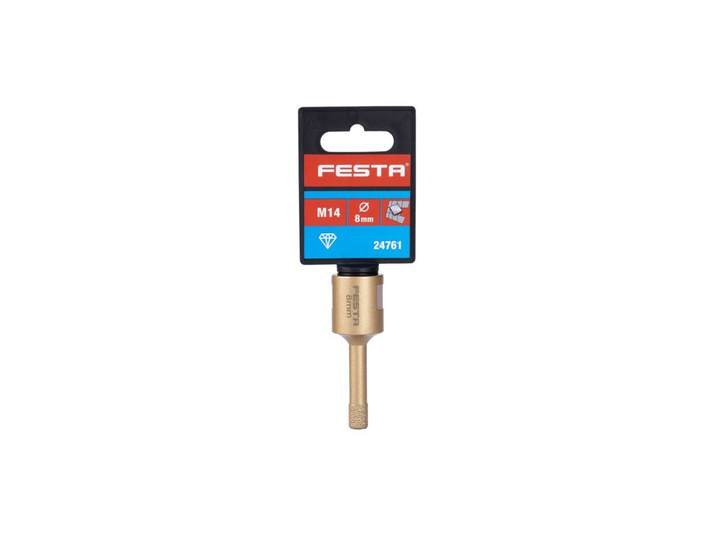 profesionální vykružovací diamantová korunka se závitem M14 - pro úhlové brusky pro "suché" přesné a rychlé vrtání do kamene, dlažby, obkladů, žuly, mramoru a jiných extrémně tvrdých materiálů nejen ve stavebnictví výška vrstvy diamantu 10 mm, dlouhá životnost bez nutnosti použít jakýkoli pomocný nástroj vykroužíte přesný otvor na požadovaném místě doporučený pracovní postup - našroubujte korunku přímo na závit hlavy úhlové brusky, pevně dotáhněte, vykružovat požadovaný otvor začněte pod úhlem 45 °, korunka a rychlost brusky okamžitě zajistí uchycení v požadovaném místě, pomalu při rovnoměrně vytvořeném tlaku narovnejte směr vykružování do svislé polohy, menší průměry 6 - 14 cm je u vrtání do tvrdých dlažeb, mezi jednotlivými vrty, ZCHLADIT - stačí ponořit do sklenice s vodou nebo nechat v otáčkách ochladit vzduchem! Instruktážní video