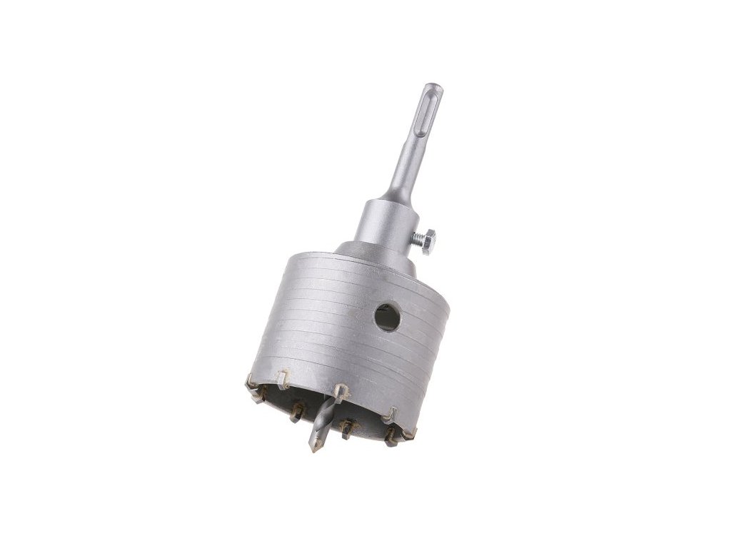 vykružovací / vrtací korunka s SK plátky a vodícím vrtákem uchycení SDS+ kvalitní SK plátky (SK - slinutý karbid), dlouhá životnost, rychlý prostup materiálem vodící - středící vrták usnadňuje práci a korunku přesně vede a drží na požadovaném místě pro vrtání větších průměrů do betonu, porobetonu, cihel a podobných zdících materiálů korunka není vhodná na vrtání železobetonu