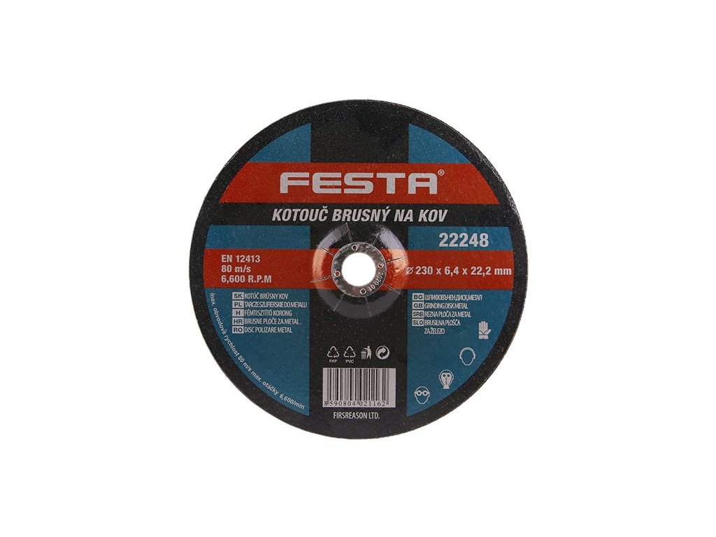 Druh Zrna: Korund Pojivo: Syntetické pryskyřice na bázi aldehydu Provedení: Vyhnutý Max. Pracovní rychlost: 80m/s Max. přípustné otáčky: 6600 1/min Pro zvýšení pevnosti armováno třívrstvou sklotextilní vložkou.