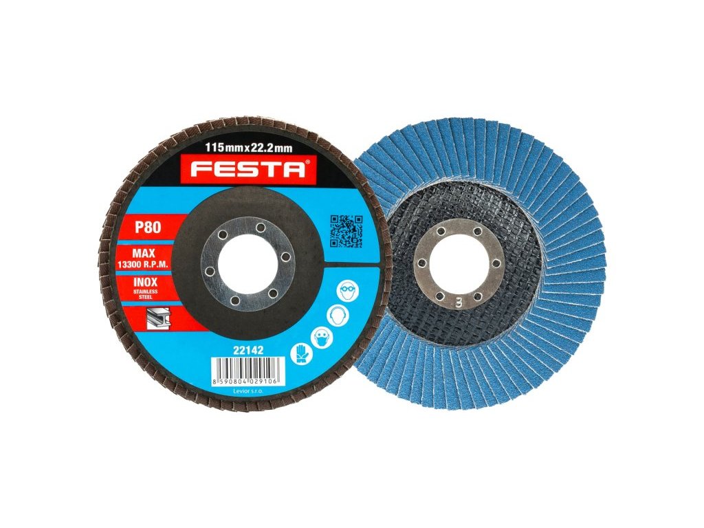 Zrnitost: 80 Druh Zrna: oxid zirkoničitý Pojivo: umělá pryskyřice Podkladový materiál: pružná tkanina-100% bavlna (240-260g/m2) Provedení: vyhnutý vnitřní průměr: 22,2mm Max. Pracovní rychlost: 80m/s Max. přípustné otáčky: 13300 1/min.