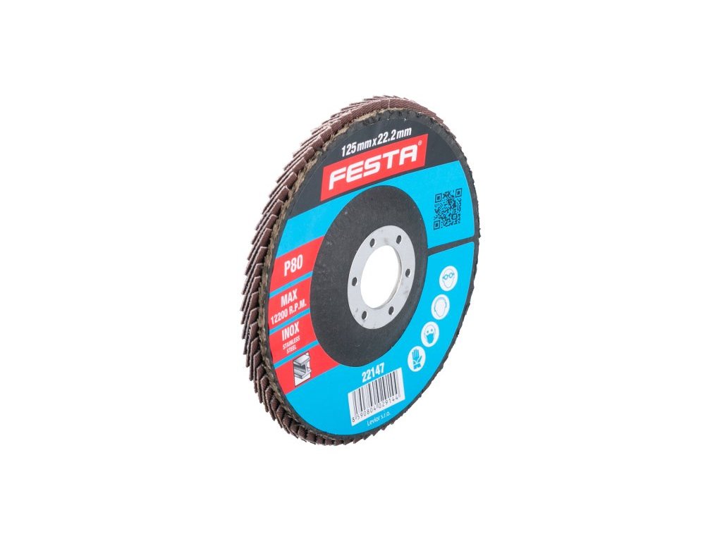 Zrnitost: 80 Druh Zrna: oxid zirkoničitý Pojivo: umělá pryskyřice Podkladový materiál: pružná tkanina-100% bavlna (240-260g/m2) Provedení: vyhnutý vnitřní průměr: 22,2mm Max. Pracovní rychlost: 80m/s Max. přípustné otáčky: 12200 1/min.