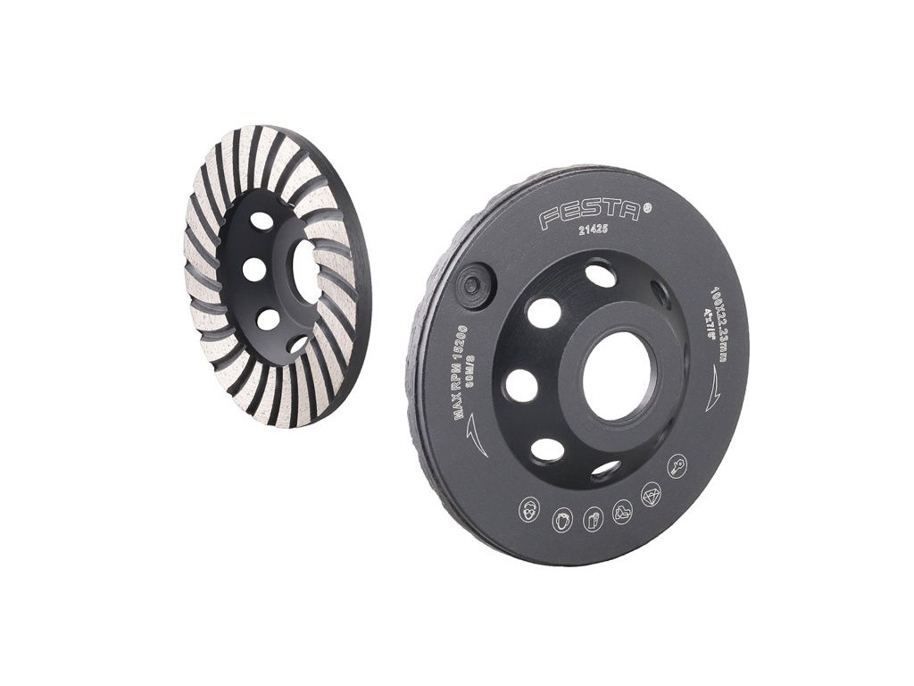 Brusný diamantový kotouč FESTA turbo, robustní nosný talíř je z pevné slitiny, speciální konstrukce uchycení diamantových segmentů k nosnému disku kotouče, vysoký obsah diamantového prachu v segmentech, použití : pro suché broušení mramoru, žuly, cihel, zdiva, přírodního i umělého kamene, obkladů, dlažeb..., lamelové provedení je vhodné pro jemné dobrušování, rozměry : uvedeny v názvu výrobku, balení : papírový box s eurootvorem. Instruktážní video