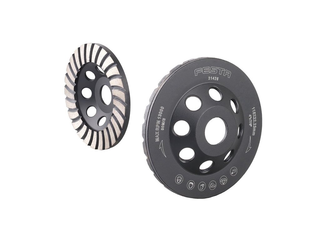 Brusný diamantový kotouč FESTA turbo, robustní nosný talíř je z pevné slitiny, speciální konstrukce uchycení diamantových segmentů k nosnému disku kotouče, vysoký obsah diamantového prachu v segmentech, použití : pro suché broušení mramoru, žuly, cihel, zdiva, přírodního i umělého kamene, obkladů, dlažeb..., lamelové provedení je vhodné pro jemné dobrušování, rozměry : uvedeny v názvu výrobku, balení : papírový box s eurootvorem. Instruktážní video