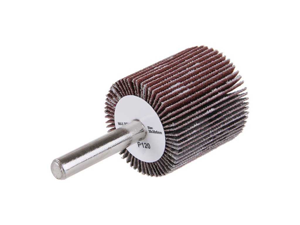 Brusný lamelový kotouč na stopce, zrnitost: 120 druh zrna: oxid hlinitý pojivo: umělá pryskyřice podkladový materiál: pružná tkanina - 100% bavlna (240-260g/m2) použití : broušení, obrušování, odrezování, odstraňování nátěrů.