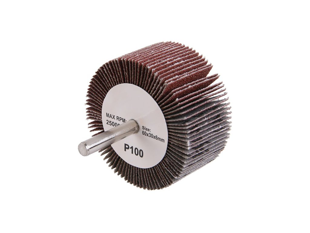 Brusný lamelový kotouč na stopce, zrnitost: 100 druh zrna: oxid hlinitý pojivo: umělá pryskyřice podkladový materiál: pružná tkanina - 100% bavlna (240-260g/m2) použití : broušení, obrušování, odrezování, odstraňování nátěrů.