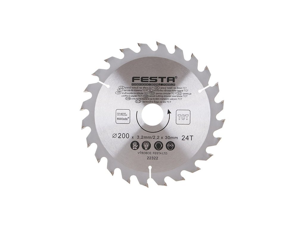 pilový kotouč s SK plátky tělo kotouče z kvalitní uhlíkové oceli (HRC:40) břitové destičky SK ( slinutý karbid ) tvrdost HRA 90 střídavý zub - pozitivní úhel čela 15° zářezy po 90° do vnitřní části chrání před přehřátím a deformací kotouče specifikace uvedeny na těle kotouče