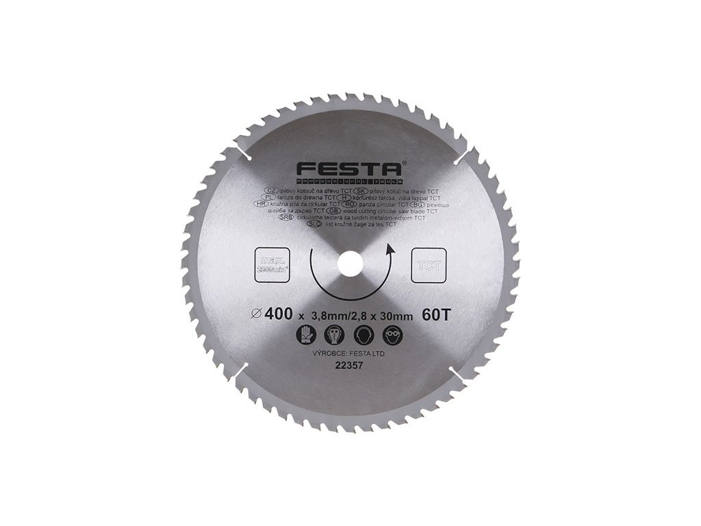 pilový kotouč s SK plátky tělo kotouče z kvalitní uhlíkové oceli (HRC:40) břitové destičky SK ( slinutý karbid ) tvrdost HRA 90 střídavý zub - pozitivní úhel čela 15° zářezy po 90° do vnitřní části chrání před přehřátím a deformací kotouče specifikace uvedeny na těle kotouče
