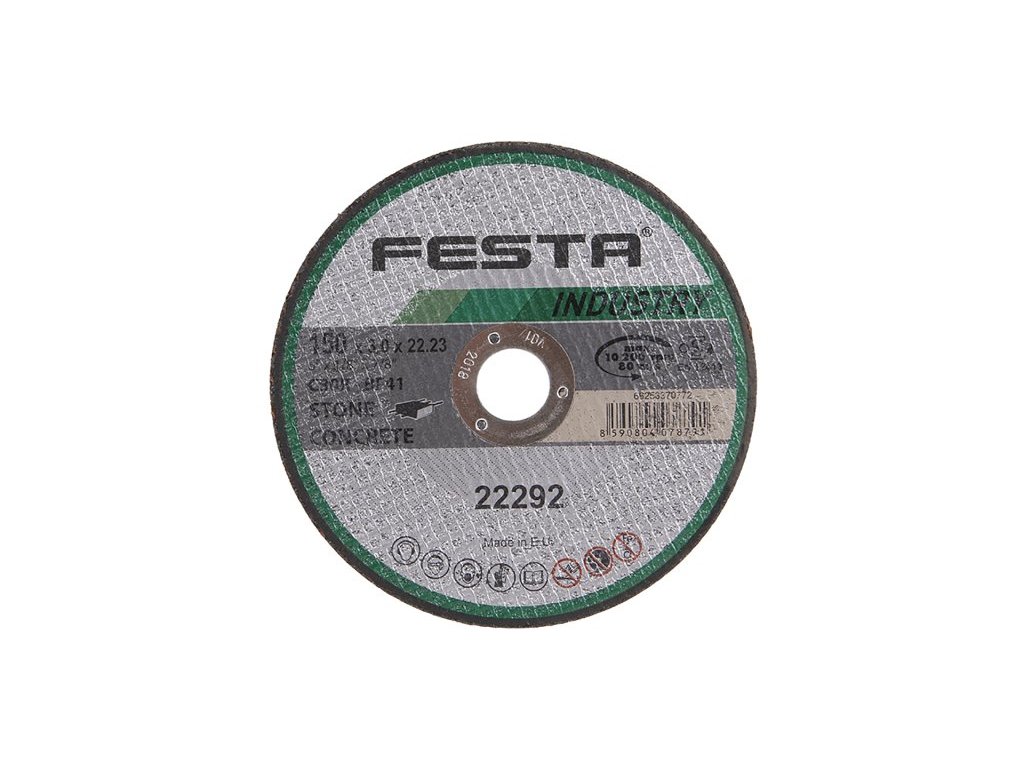 Profesionální řezný kotouč na přírodní i umělý kámen, vyrobeno v EVROPĚ!, řada kotoučů FESTA INDUSTRY je, jak již z názvu vyplývá určena zejména pro profesionální použití, kvalita ověřená reálnými zkouškami zaměřenými na počet a rychlost řezů. Druh zrna - KARBID KŘEMÍKU, pojivo - syntetické pryskyřice na bázi aldehydu, provedení - ROVNÝ, max. pracovní rychlost - 80 m/s, max. přípustné otáčky - 6600 ot/min, PRO ZVÝŠENÍ PEVNOSTI ARMOVÁNO DVOUVRSTVOU SKLOTEXTILNÍ VLOŽKOU! KOTOUČE FESTA INDUSTRY SPLNUJÍ EN 12413 a homologaci OSA!