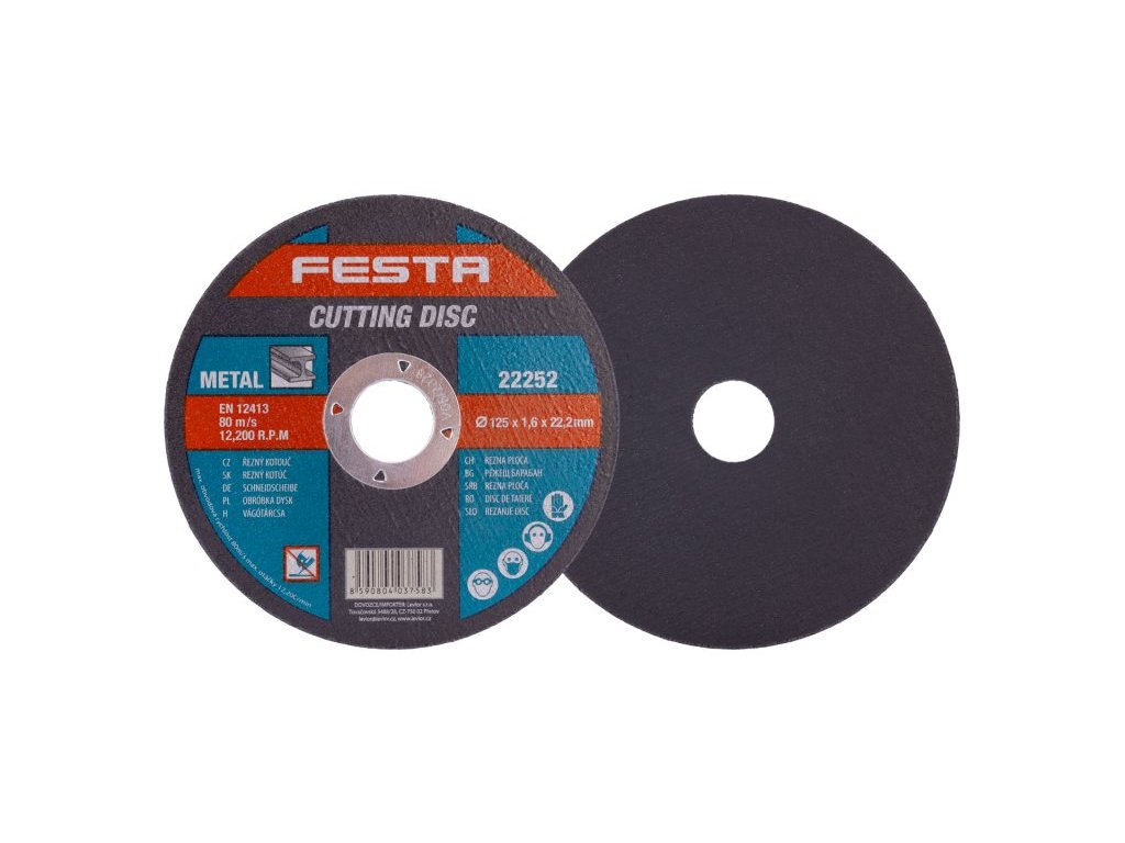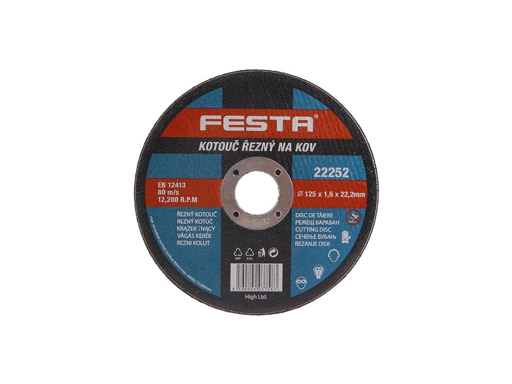 Druh Zrna: Korund Pojivo: Syntetické pryskyřice na bázi aldehydu Provedení: Rovný Max. Pracovní rychlost: 80m/s Max. přípustné otáčky: 12200 1/min Pro zvýšení pevnosti armováno dvouvrstvou sklotextilní vložkou. Použití na kov, litinu, NEREZ. Instruktážní video