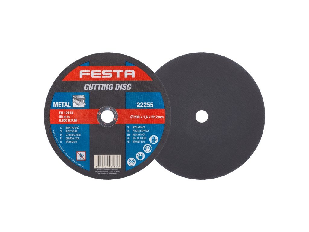 Druh Zrna: Korund Pojivo: Syntetické pryskyřice na bázi aldehydu Provedení: Rovný Max. Pracovní rychlost: 80m/s Max. přípustné otáčky: 6600 1/min Pro zvýšení pevnosti armováno dvouvrstvou sklotextilní vložkou. Použití na kov, litinu, NEREZ.