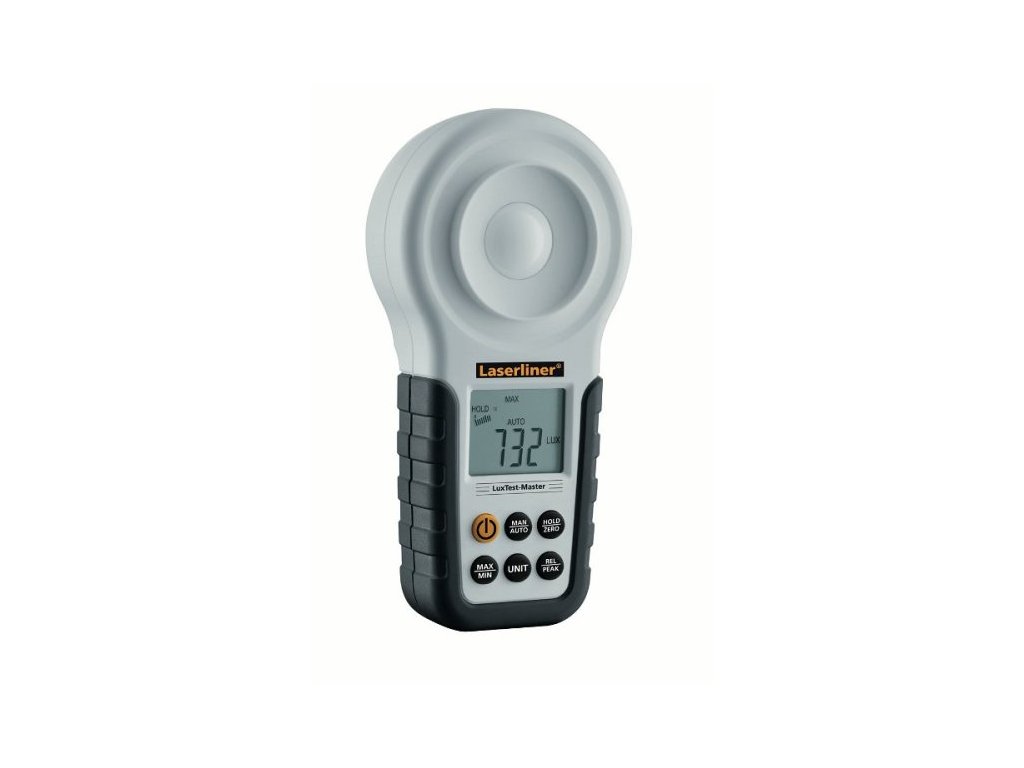Profesionální měřící přístroj intenzity osvětlení na pracovištích, kancelářích, veřejných budovách a v průmyslu. Citlivá fotodioda s kosinovou korekcí pro širokoúhlé měření světla. Špičková funkce pro registraci rychlé změny v úrovni osvětlení. Funkce nulování. 1/4 závit na stativ. Rozsah měření 20 Lux...200000 Lux. Dodáno s: LuxTest-Master, baterie, přepravní kufr