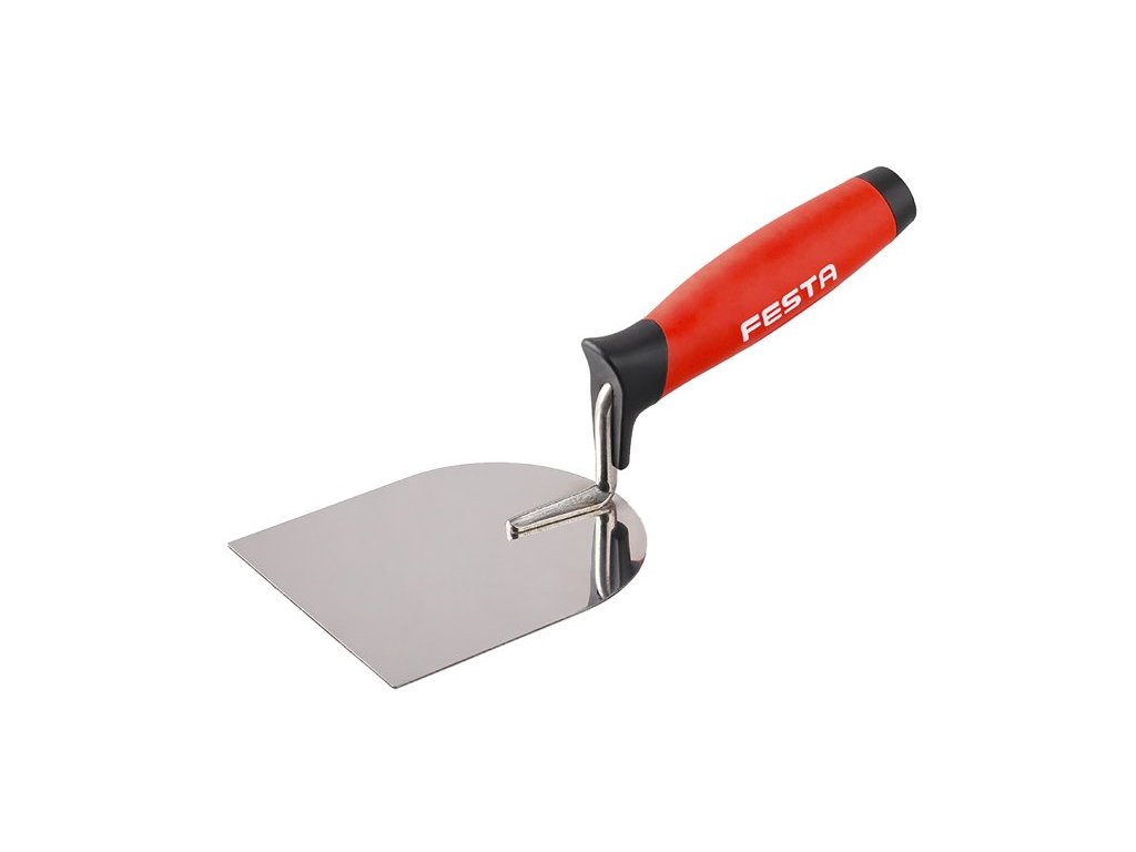 Lžíce vymazávací nerezová FESTA 120 mm s gumovou ručkou. Kvalitní nerezová ocel. Slouží pro dokončovací práce ve stavebnictví.