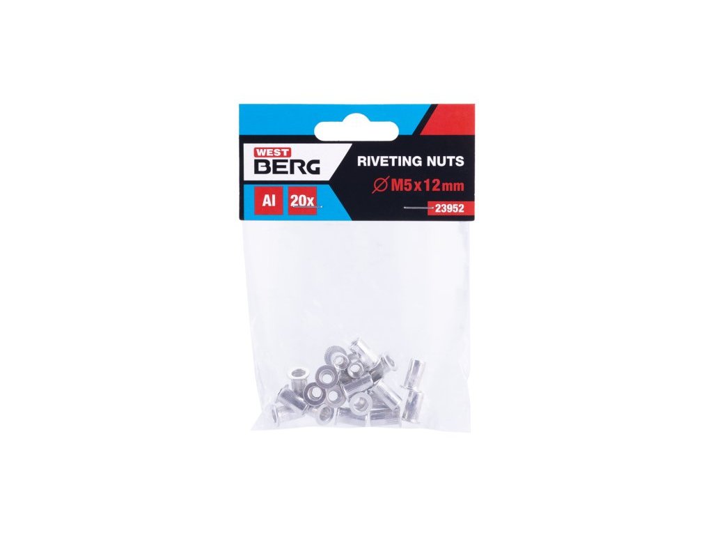 Hliníková nýtovací matice s metrickým závitem M5, délka 12 mm, počet v balení 20 ks, vroubkovaný límec pro větší pevnost spoje. Aplikujte pomocí - nýtovacích kleští FESTA číslo 24035.
