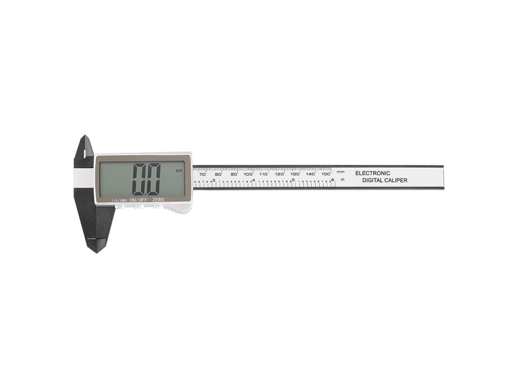 digitální posuvné měřidlo 0 - 150 mm, přesnost 0,2 mm, rozlišení 0,1mm přehledný, velký, dobře čitelný LCD display možnost přepínání měření v mm i v inch (palcích) tělo tvoří kvalitní - odolný feberglass, přesný a hladký posuv, stabilní zachování naměřené pozice baleno v plastové krabičce, napájení - knoflíková baterie CR 2032