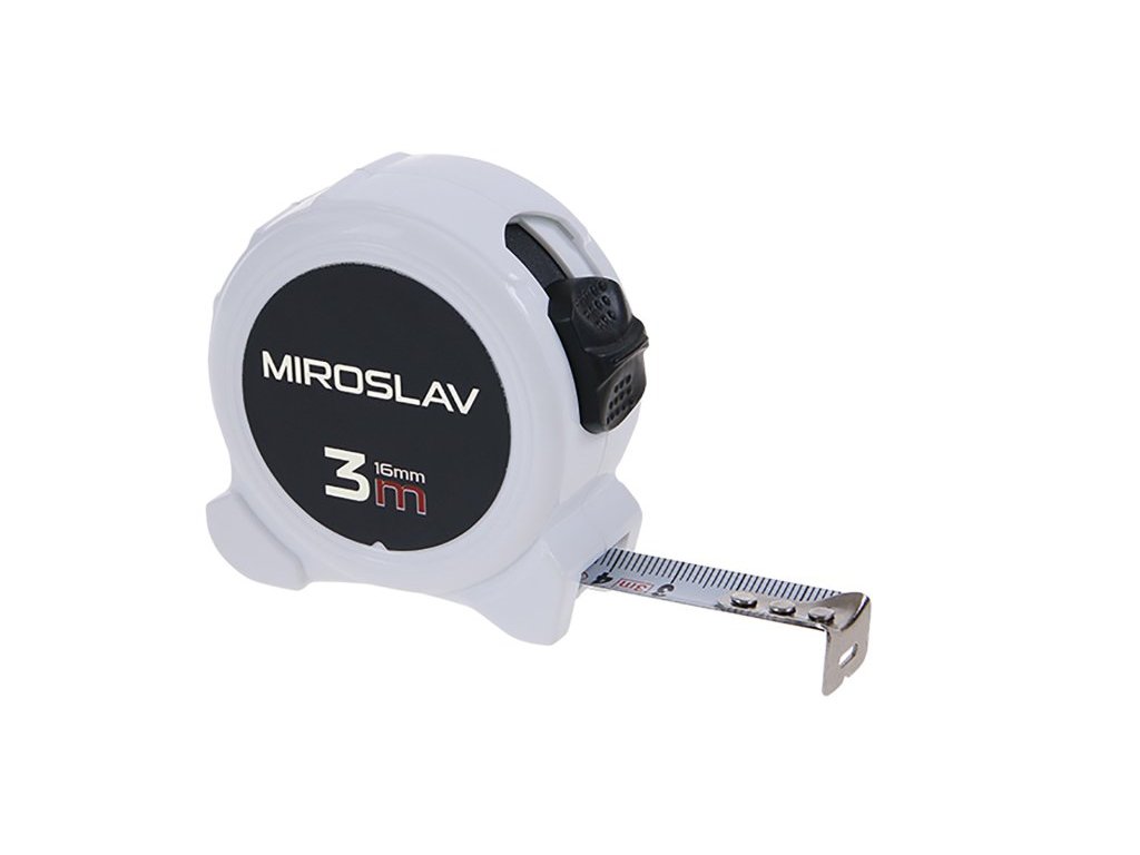 Svinovací metr se jménem, kalená páska, pouzdro metru vyrobeno z ABS plastu, široká dobře čitelná stupnice s velkými čísly, poutko, klip na opasek. CE certifikát - metr vhodný ke kalibraci.