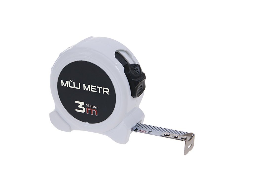 Svinovací metr se jménem, kalená páska, pouzdro metru vyrobeno z ABS plastu, široká dobře čitelná stupnice s velkými čísly, poutko, klip na opasek. CE certifikát - metr vhodný ke kalibraci.