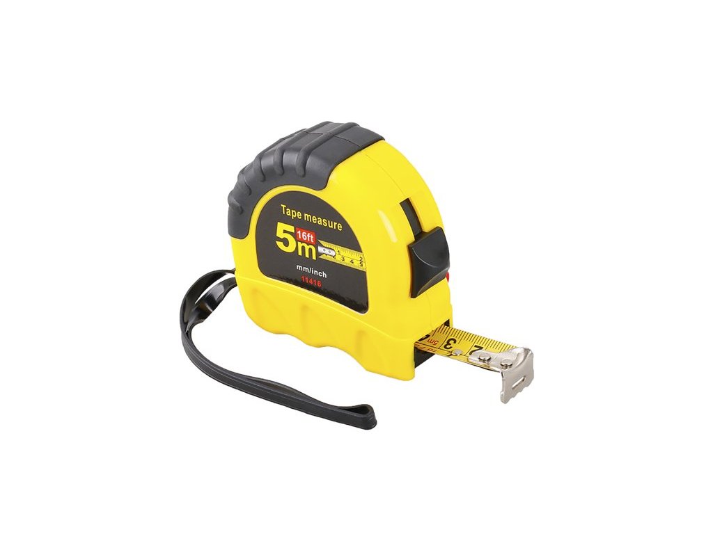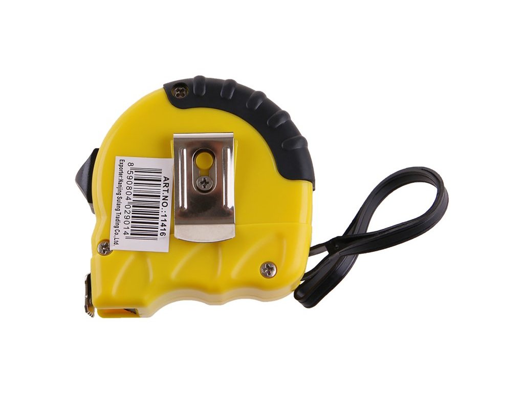 svinovací metr se stupnicí v cm a inch kalená páska, dělená stupnice na pásce metrická i palcová, poutko, klip na opasek