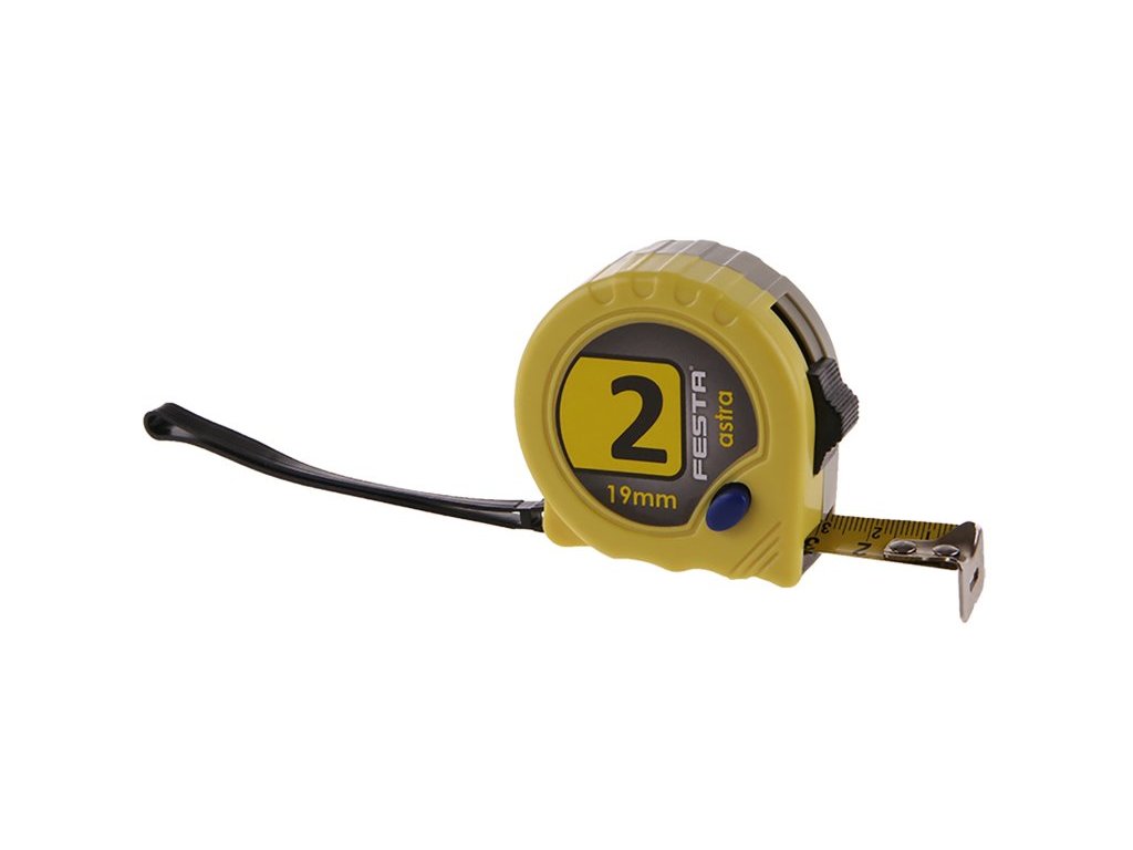 metr svinovací v prodejním boxu - různobarevné provedení kalená páska, dobře čitelná stupnice, dvě brzdy, poutko, klip na opasek