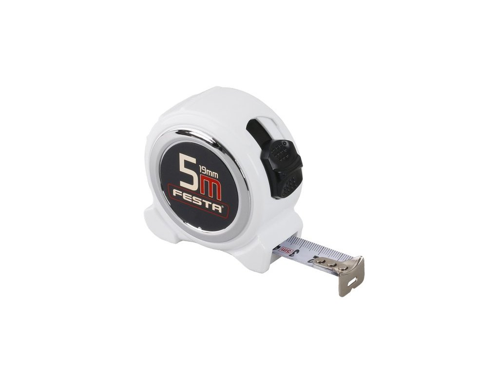 metr svinovací 5 m x 19mm kalená páska, pouzdro metru vyrobeno z ABS plastu, široká dobře čitelná stupnice s velkými čísly, klip na opasek CE certifikát - metr vhodný ke kalibraci