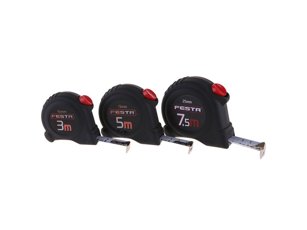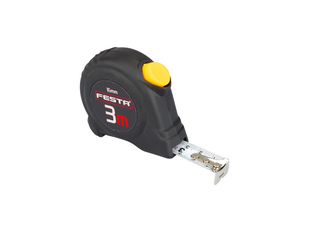 svinovací metr s automatickou brzdou kalená páska, dobře čitelná stupnice, CE certifikát - metr vhodný ke kalibraci pouzdro metru vyrobeno z ABS plastu s gumovou ochranou - vyšší odolnost proti poškození a lepší stabilita při manipulaci automatická brzda drží pásku okamžitě připravenou k měření, k navinutí pásky dojde po stisku tlačítka háček s plovoucím uchycením pro vnitřní i vnější měření, klip na opasek