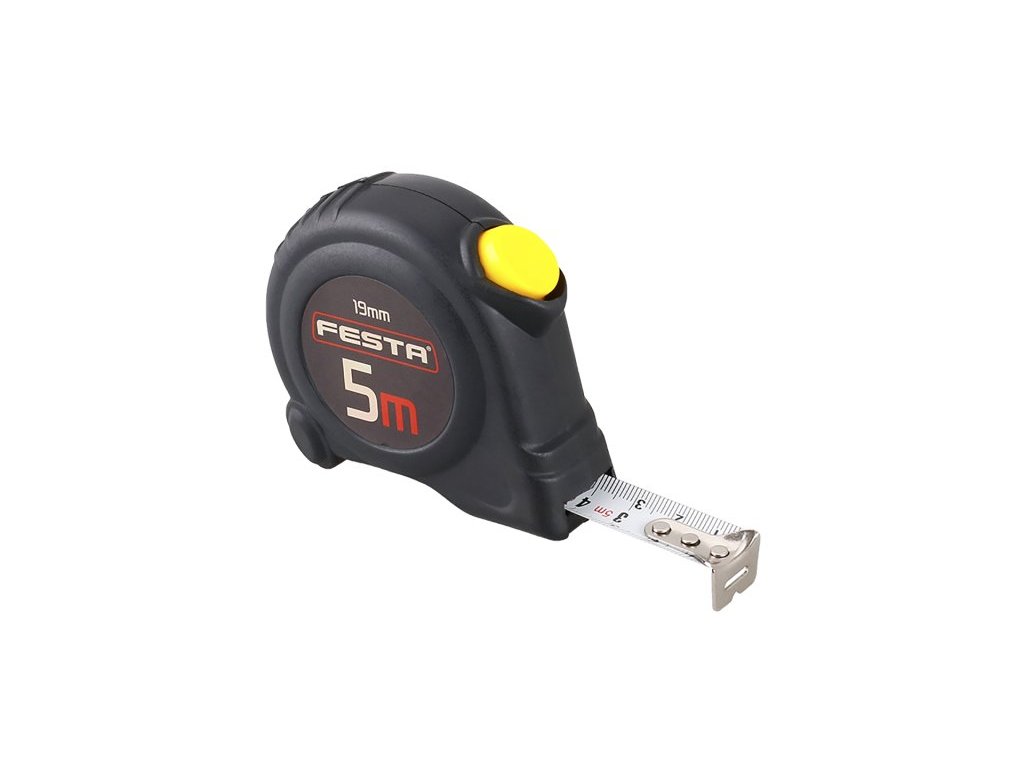 svinovací metr s automatickou brzdou kalená páska, dobře čitelná stupnice, CE certifikát - metr vhodný ke kalibraci pouzdro metru vyrobeno z ABS plastu s gumovou ochranou - vyšší odolnost proti poškození a lepší stabilita při manipulaci automatická brzda drží pásku okamžitě připravenou k měření, k navinutí pásky dojde po stisku tlačítka háček s plovoucím uchycením pro vnitřní i vnější měření, klip na opasek