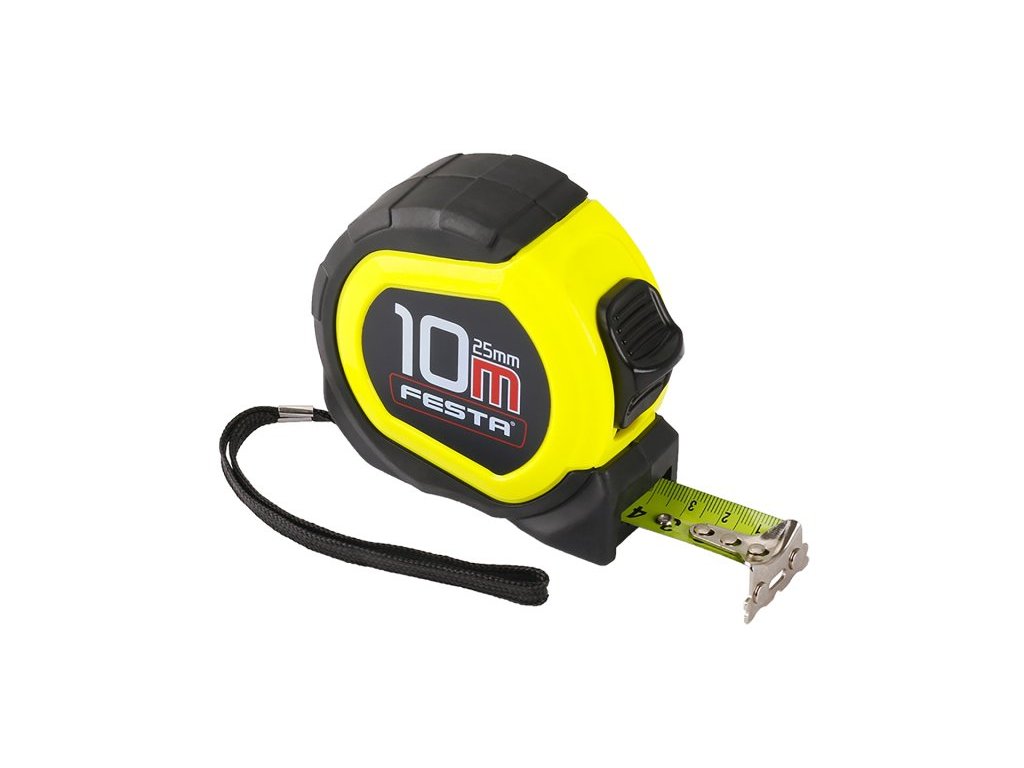 svinovací metr FESTA magnetic II. třída přesnosti, CE - certifikát, metr vhodný ke kalibraci kalená páska, fluorescenční vrstva - dobře čitelná stupnice i v horších světelných podmínkách, magnetický háček pouzdro metru z ABS plastu s gumovou ochranou - vyšší odolnost proti poškození při nárazech, lepší manipulace a úchop metru poutko, klip na opasek