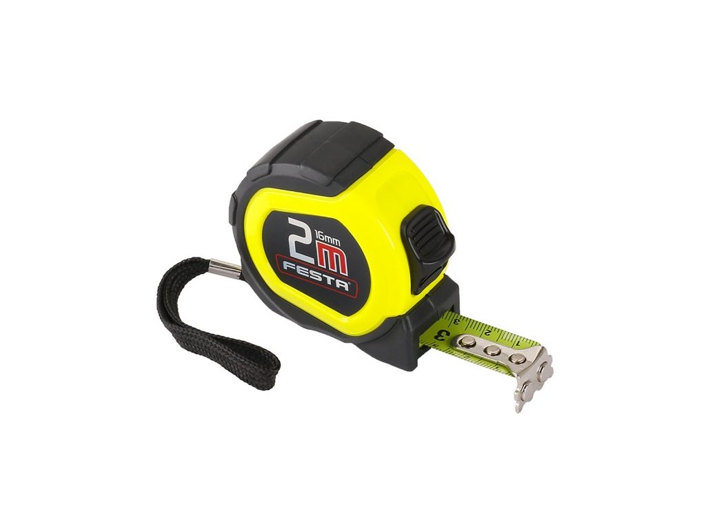 svinovací metr FESTA magnetic II. třída přesnosti, CE - certifikát, metr vhodný ke kalibraci kalená páska, fluorescenční vrstva - dobře čitelná stupnice i v horších světelných podmínkách, magnetický háček pouzdro metru z ABS plastu s gumovou ochranou - vyšší odolnost proti poškození při nárazech, lepší manipulace a úchop metru poutko, klip na opasek