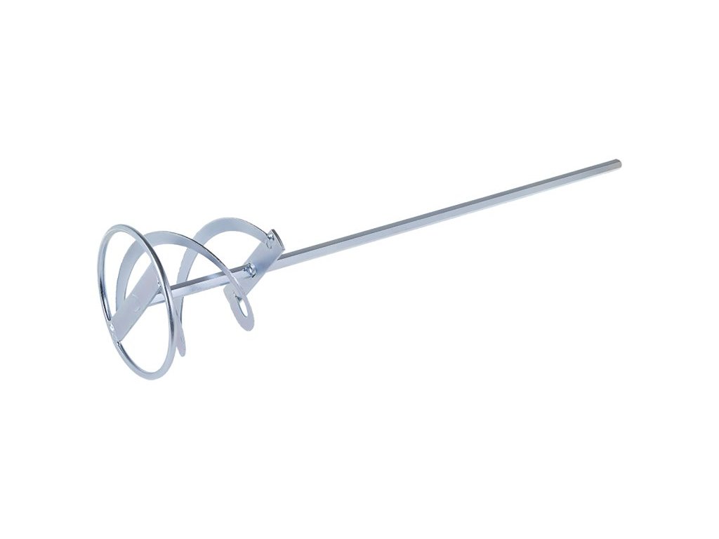 Míchadlo s kruhem (metla), pozinkované, rozměr: 120 x 500 mm - šestihran, použití: spirálová metla se používá pro důkladné rozmíchání lepidel na obklady, spárovaných hmot, lepících malt, hotových omítek, mazaniny, stěrkovacích hmot, vyrovnávacích hmot.