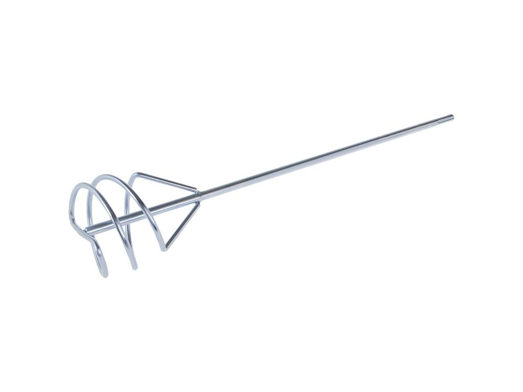 Míchadlo spirála - drát ( metla ), pozinkované, 100 x 500 mm - SDS +, použití : pro důkladné rozmíchání lepidel na obklady, spárovaných hmot, lepících malt, hotových omítek, mazaniny, stěrkovacích hmot, vyrovnávacích hmot.