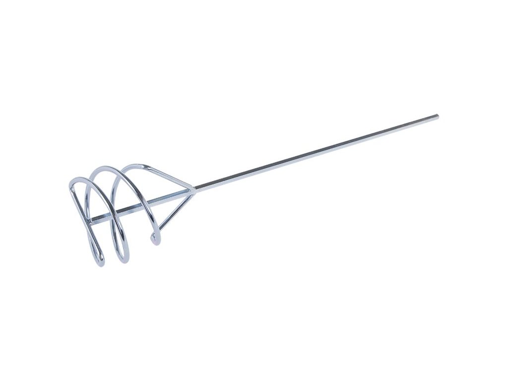 Míchadlo spirála - drát (metla), pozinkované, rozměr: 100 x 500 mm - šestihran, použití: pro důkladné rozmíchání lepidel na obklady, spárovaných hmot, lepících malt, hotových omítek, mazaniny, stěrkovacích hmot, vyrovnávacích hmot.