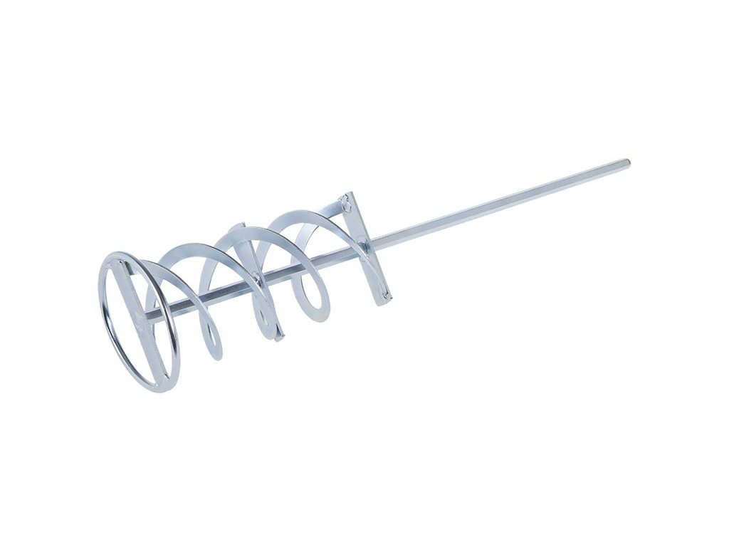 míchadlo - metla s prodlouženou spirálou pozinkované průměr 100 mm, délka 500 mm stopka - šestihran použití : rozmíchání lepidel na obklady, spárovacích hmot, lepících malt, hotových omítek, mazaniny, stěrkovacích hmot, vyrovnávacích hmot, atd.