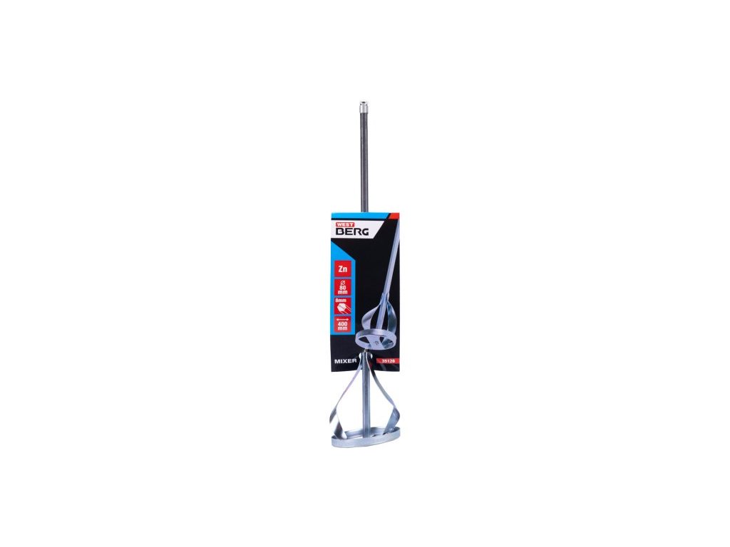 Míchadlo s kruhem (metla ), pozinkované, rozměr : 80 x 400 mm - šestihran, použití : pro rozmíchání nástěnných barev, disperzních barev, klihů, zalévacích hmot, laků, živice, potěrů.