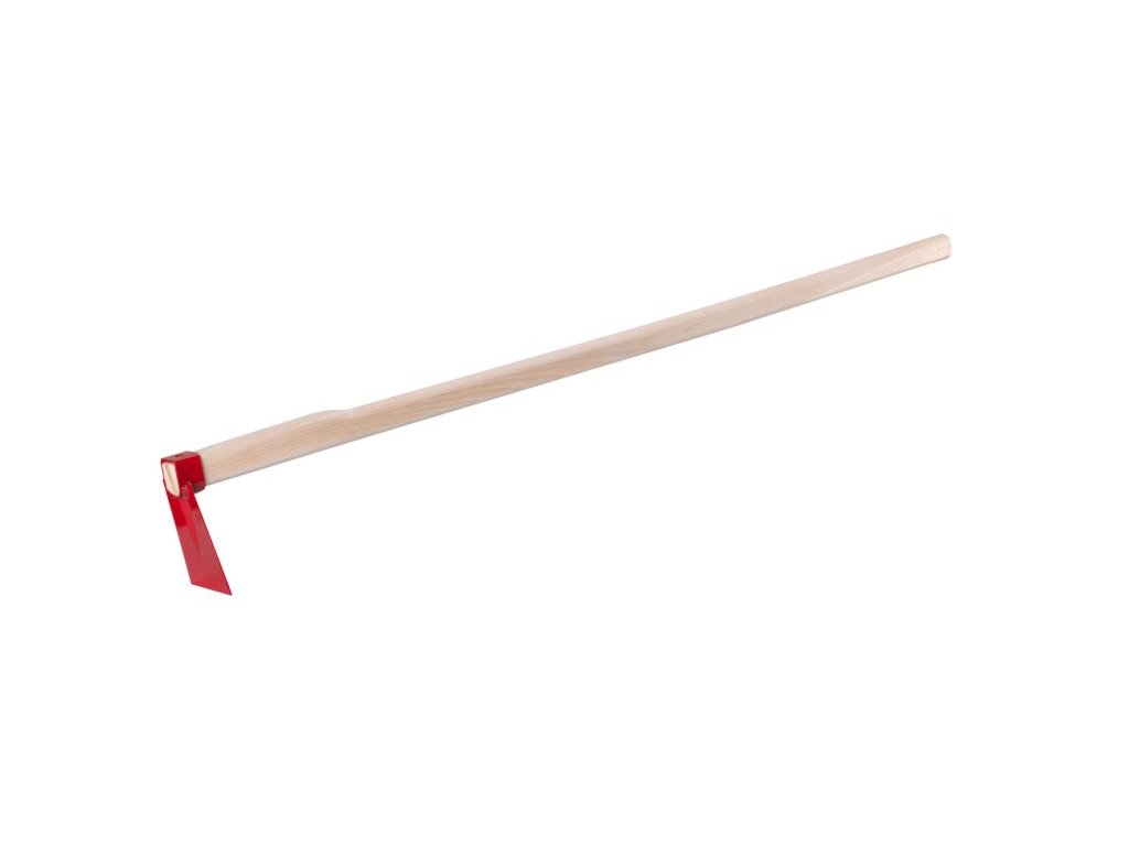 Ostřená ocelová motyka s násadou 120 cm, šířka 75 mm, odolná prášková barva.