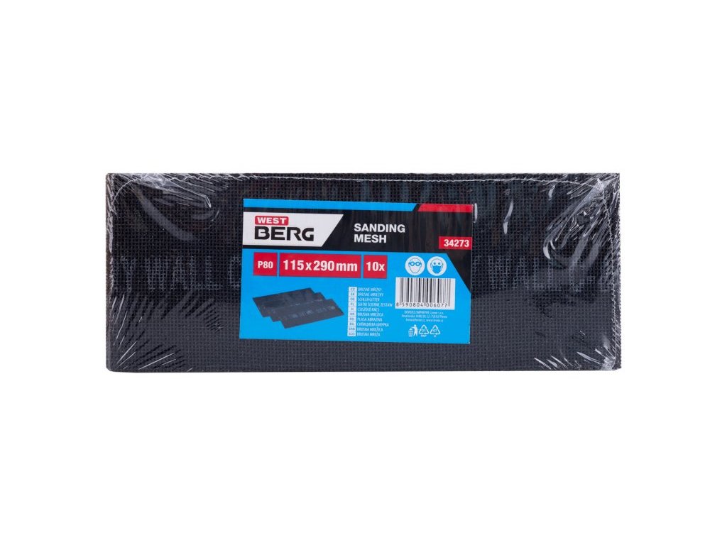 Brusná mřížka 115 x 290 mm, zrnitost 80, 10ks/sada. , nosná tkanina ze