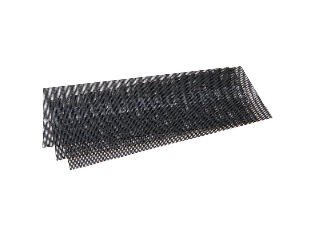 Brusná mřížka 115 x 290 mm, zrnitost 120, 3ks/sada s eurootvorem , nosná tkanina ze skelných vláken, pryskyřicí přilepena brousicí zrna karbidu křemíku nanšena antistaticky, vhodné pro broušení sadrokartonových spárovacích hmot, i dalších materiálů, výhoda mřížkové struktury proti běžným brousicím papírům spočívá v tom, že se nezanáší odbroušeným materiálem.