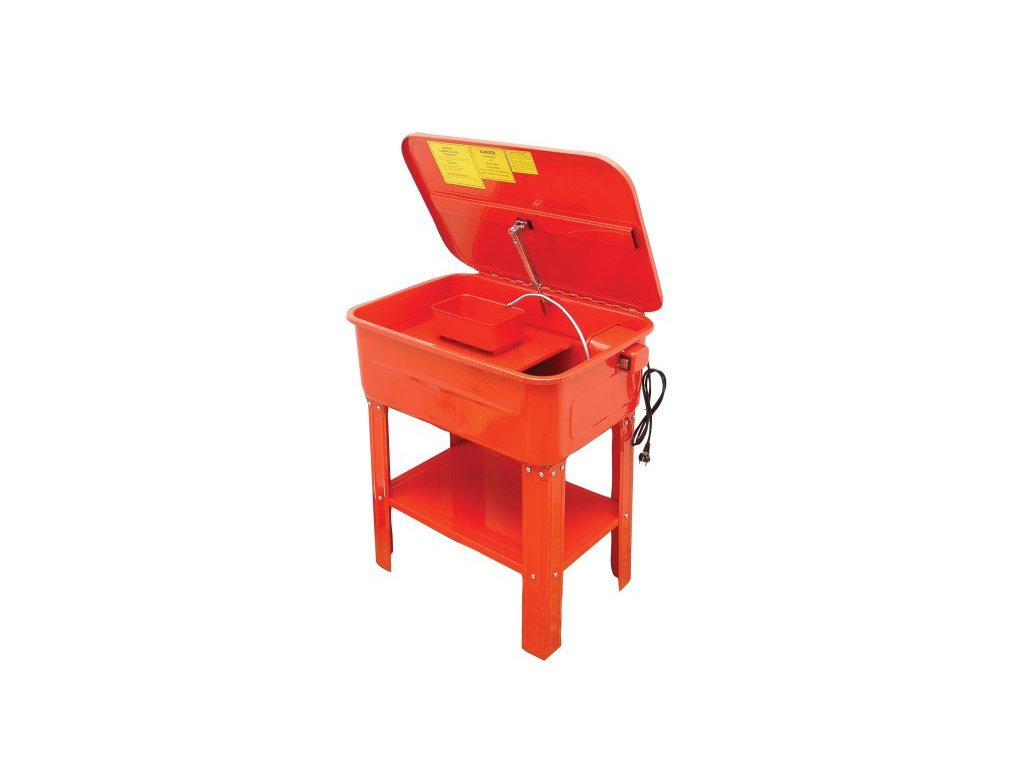 Myčka součástek o objemu 75 L., průtoku 20l/min, max.teplota čistící kapaliny 50°C. Prostorná mycí vana určená k použití ekologických mycích roztoků rozpustných vodou. Ocelové provedení. Součástí dodávky je čerpadlo a tryska na ohebném krčku.