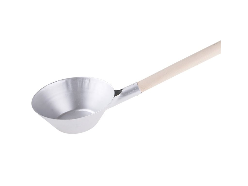 Zednická naběračka (fanka) s dřevěnou násadou o průměru 215 mm a délce 160 cm. Použití: přemisťování stavebních hmot (malta, beton).