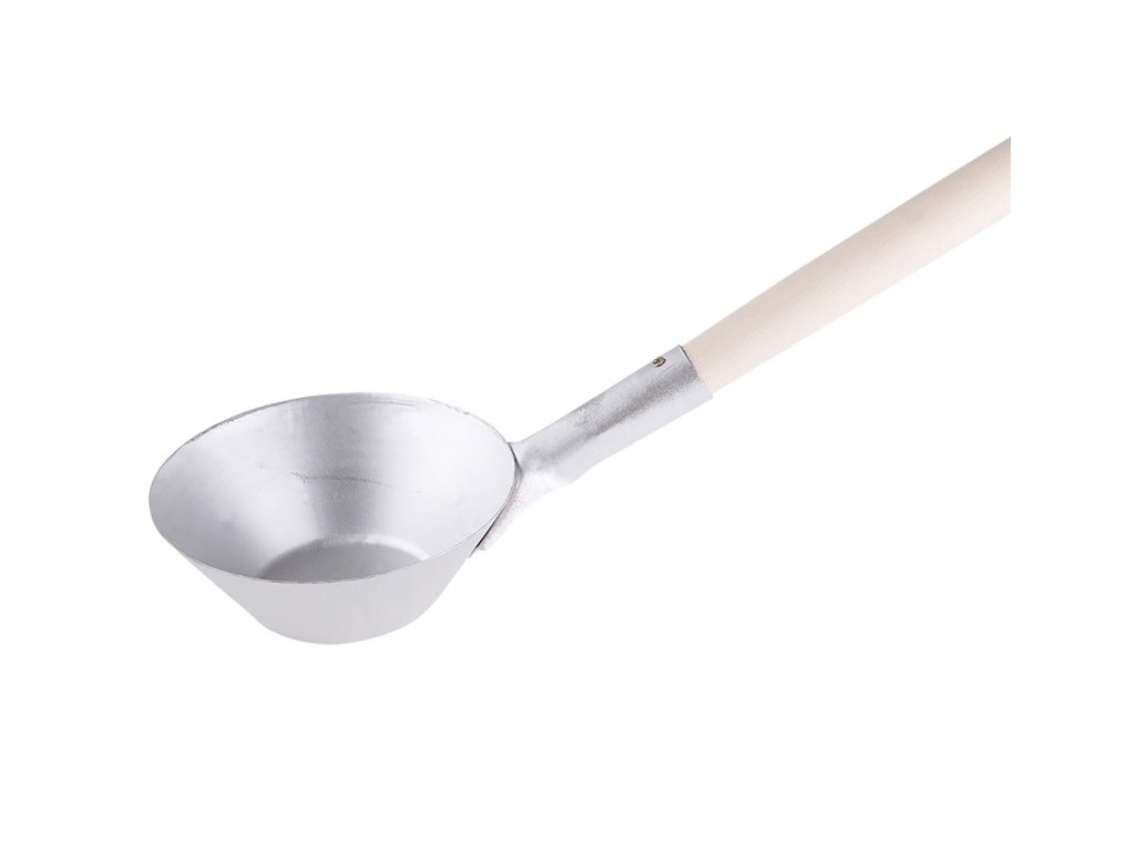 Zednická naběračka (fanka) PROFI s dřevěnou násadou o průměru 215 mm a délce 130 cm. Výztuž tuleje pro větší pevnost. Použití: přemisťování stavebních hmot (malta, beton).