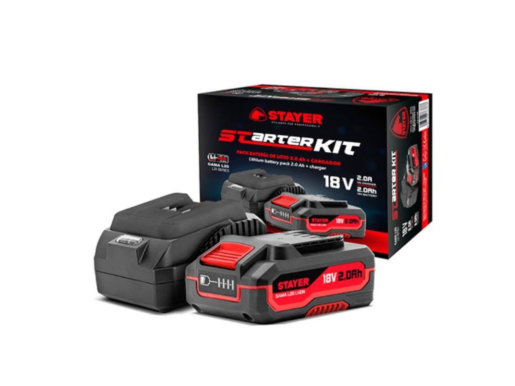 - sada nabíječky a baterie 1 x 2,0 Ah baterie, STARTERKIT, STAYER