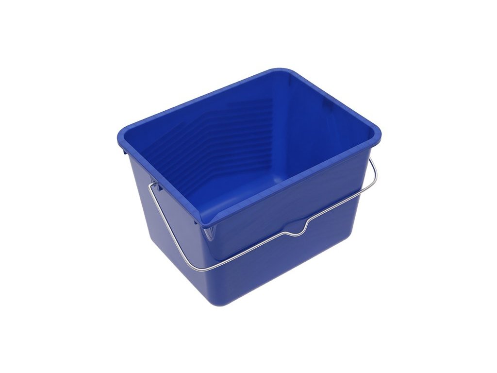 Plastový malířský čtyřhranný kbelík na barvu 8 L. Jedna delší stěna rýhovaná. Vyrobeno v EU.
