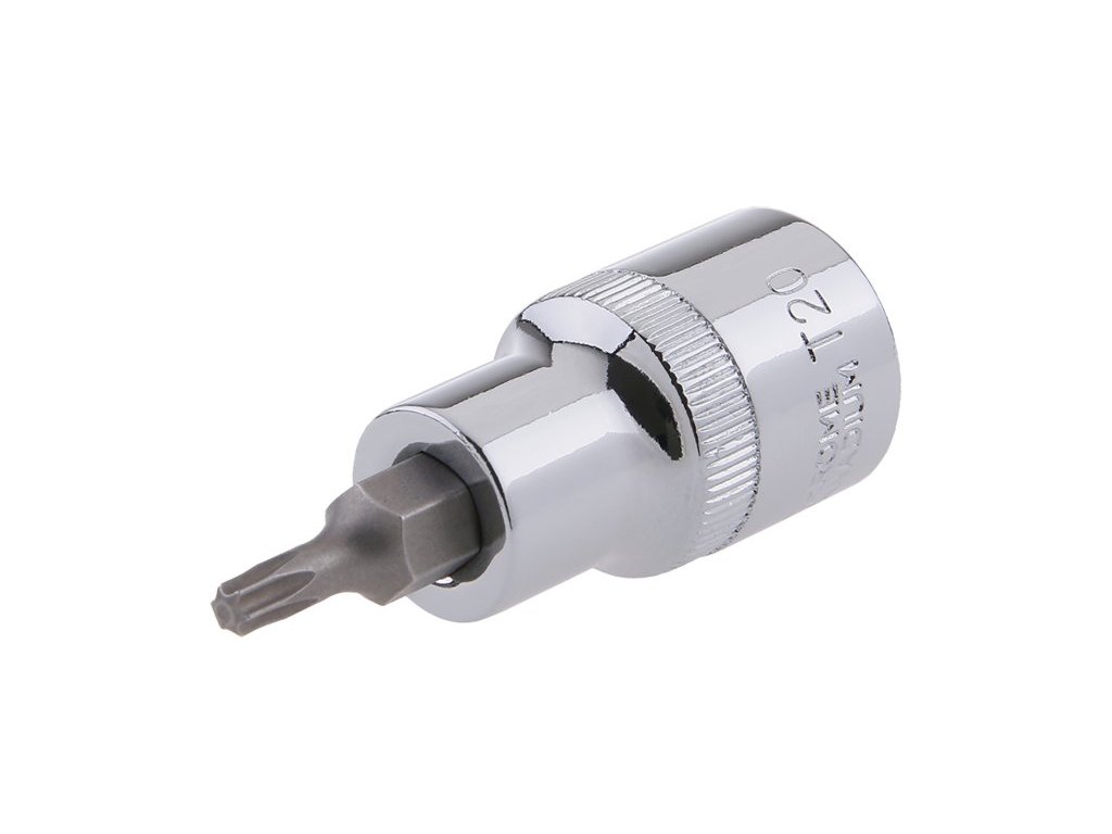 Šroubovací nástavec TORX 20 1/2 se zalisovaným nástavcem z chrom-vanadové oceli.