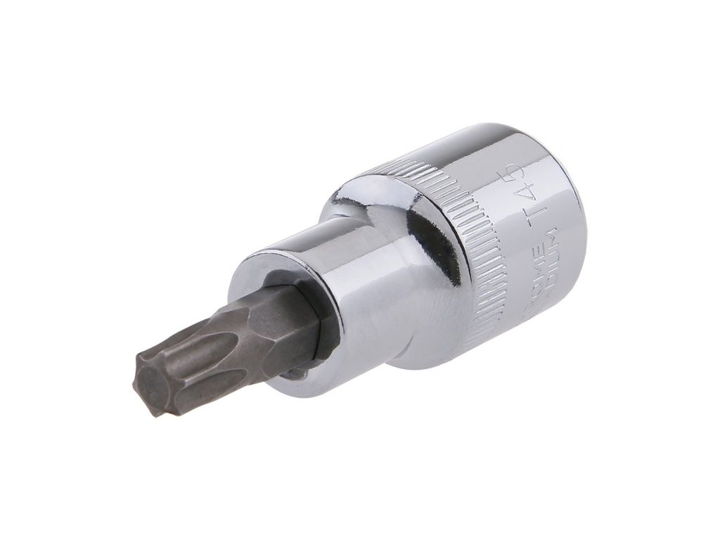 Šroubovací nástavec TORX 45 1/2 se zalisovaným nástavcem z chrom-vanadové oceli.