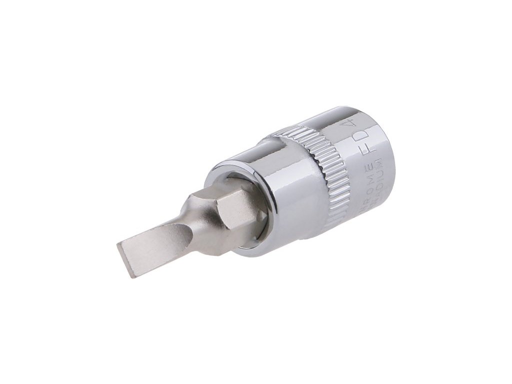 Šroubovací nástavec plochý 1/4 se zalisovaným nástavcem z chrom-vanadové oceli 4mm.