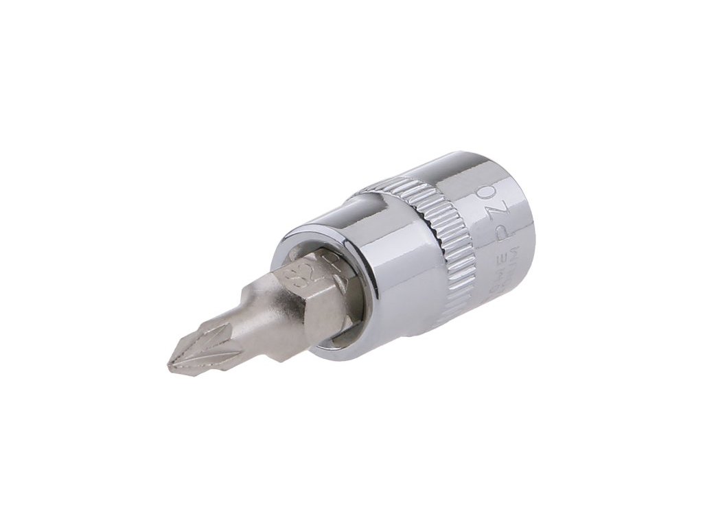 Šroubovací nástavec PZ 0 1/4 se zalisovaným nástavcem z chrom-vanadové oceli.