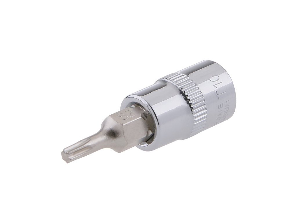 Šroubovací nástavec TORX 10 1/4 se zalisovaným nástavcem z chrom-vanadové oceli.