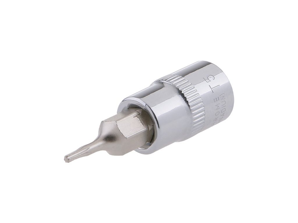 Šroubovací nástavec TORX 5 1/4 se zalisovaným nástavcem z chrom-vanadové oceli.