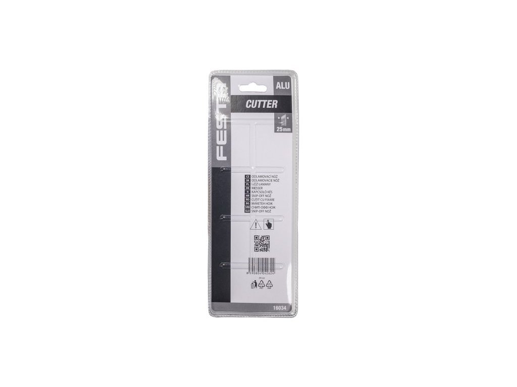 Profesionální odlamovací nůž, přesné zpracování - kvalitní materiály a ergonomie, odolný a přesný posuv s automatickou aretací, pojistná šroubková aretace, šířka čepele 25mm, baleno na blistru.