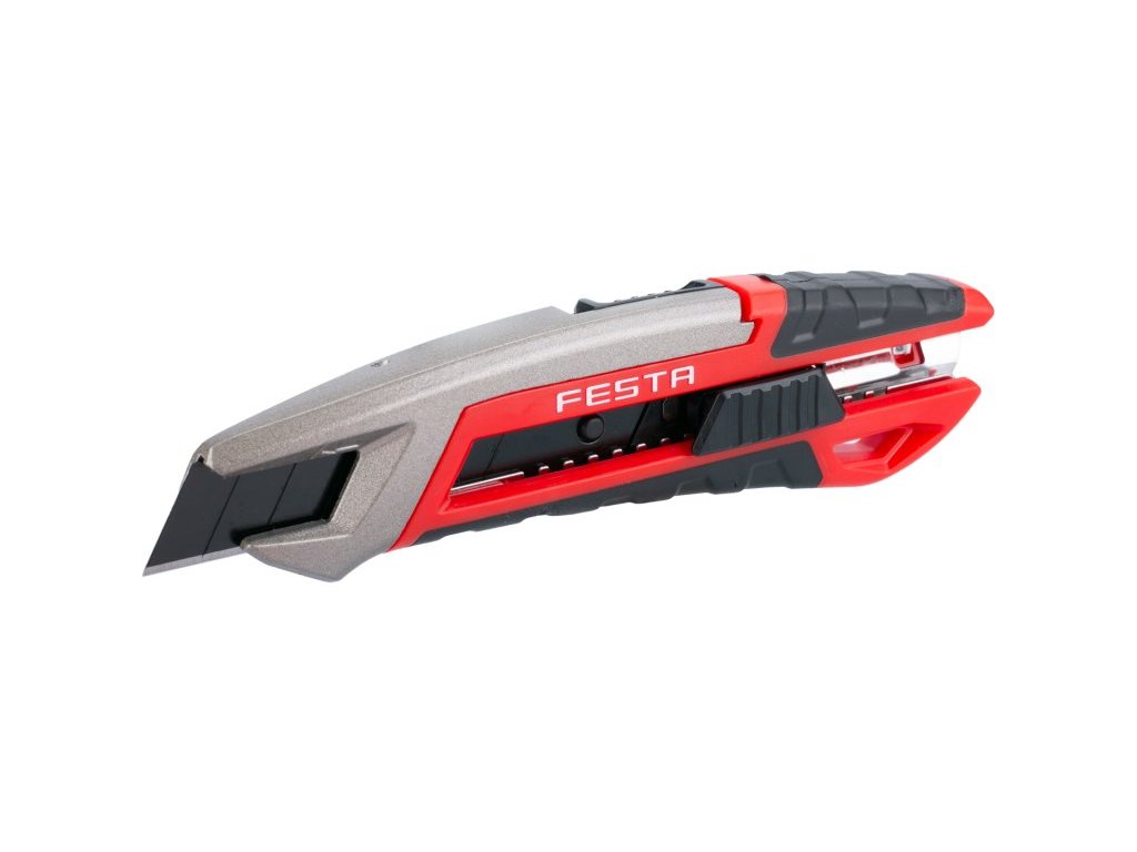speciální pákový mechanizmus ze slitiny hliníku pro bezpečné odlomení čepele s magnetem pro zachycení odlomeného segmentu