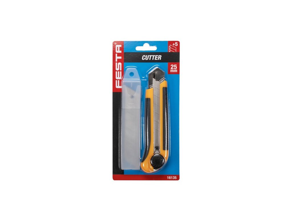 Odlamovací nůž FESTA 25mm, kvalitní materiály, kovová lišta, odolná šroubková aretace, 5 náhradních břitů, blistr.